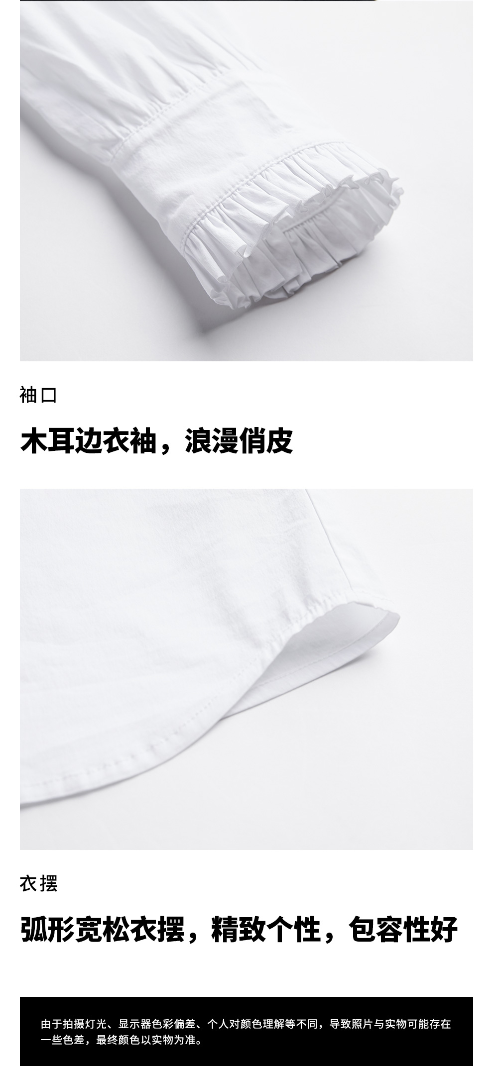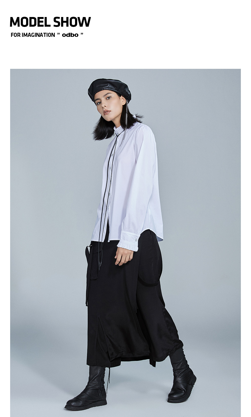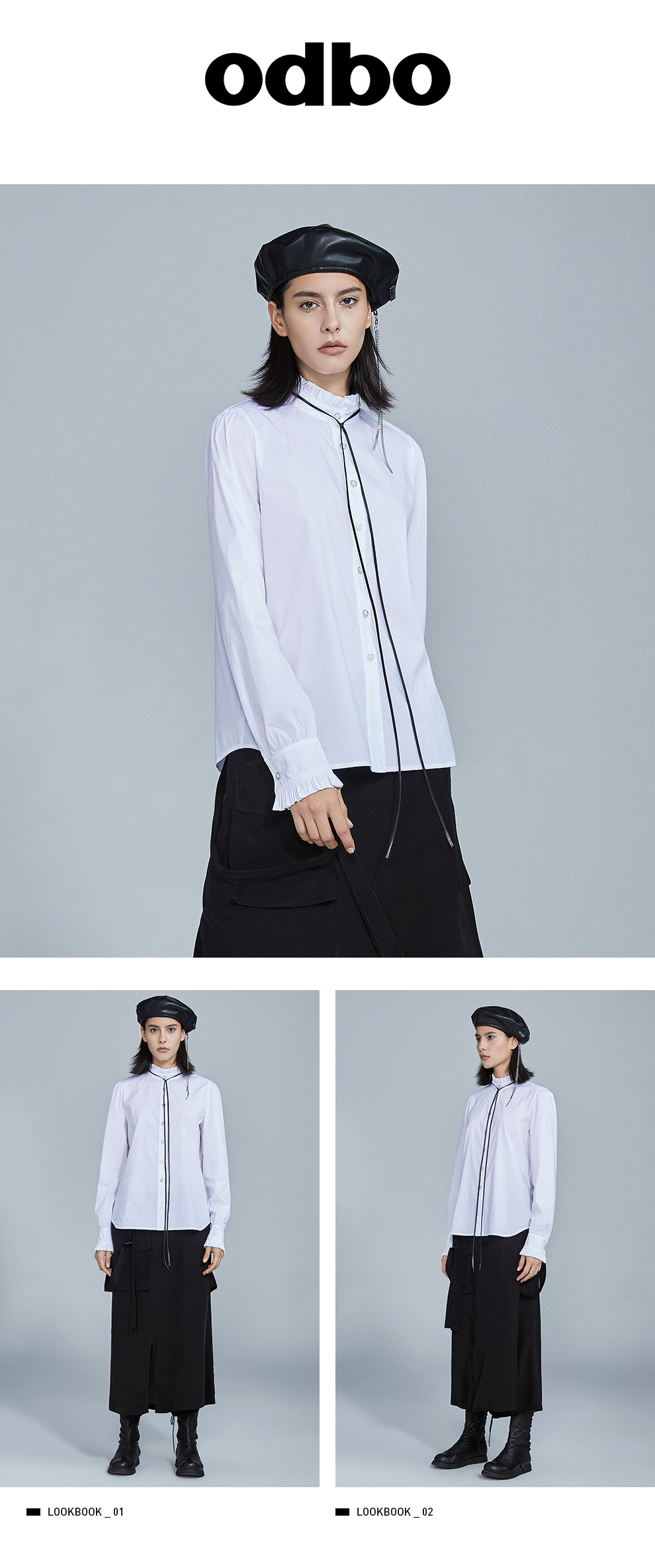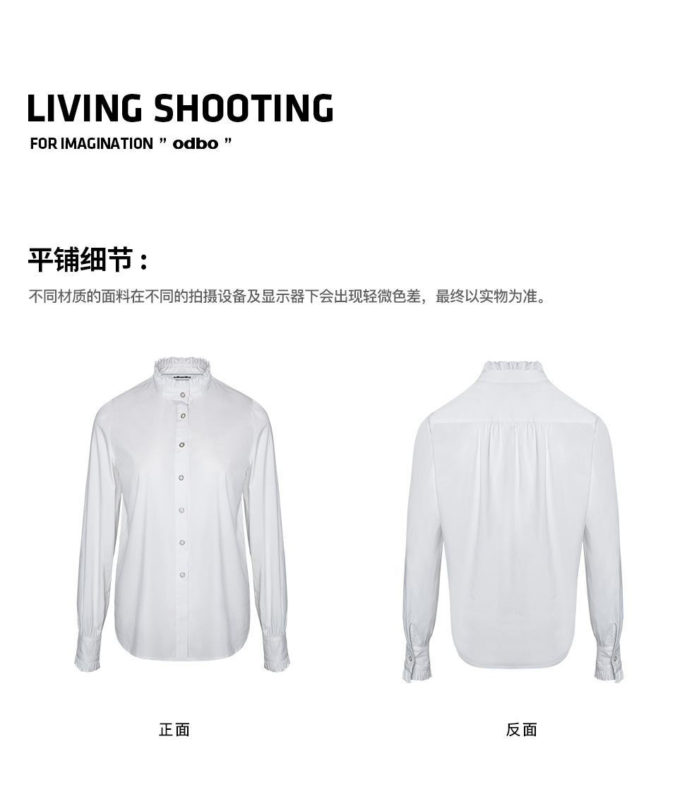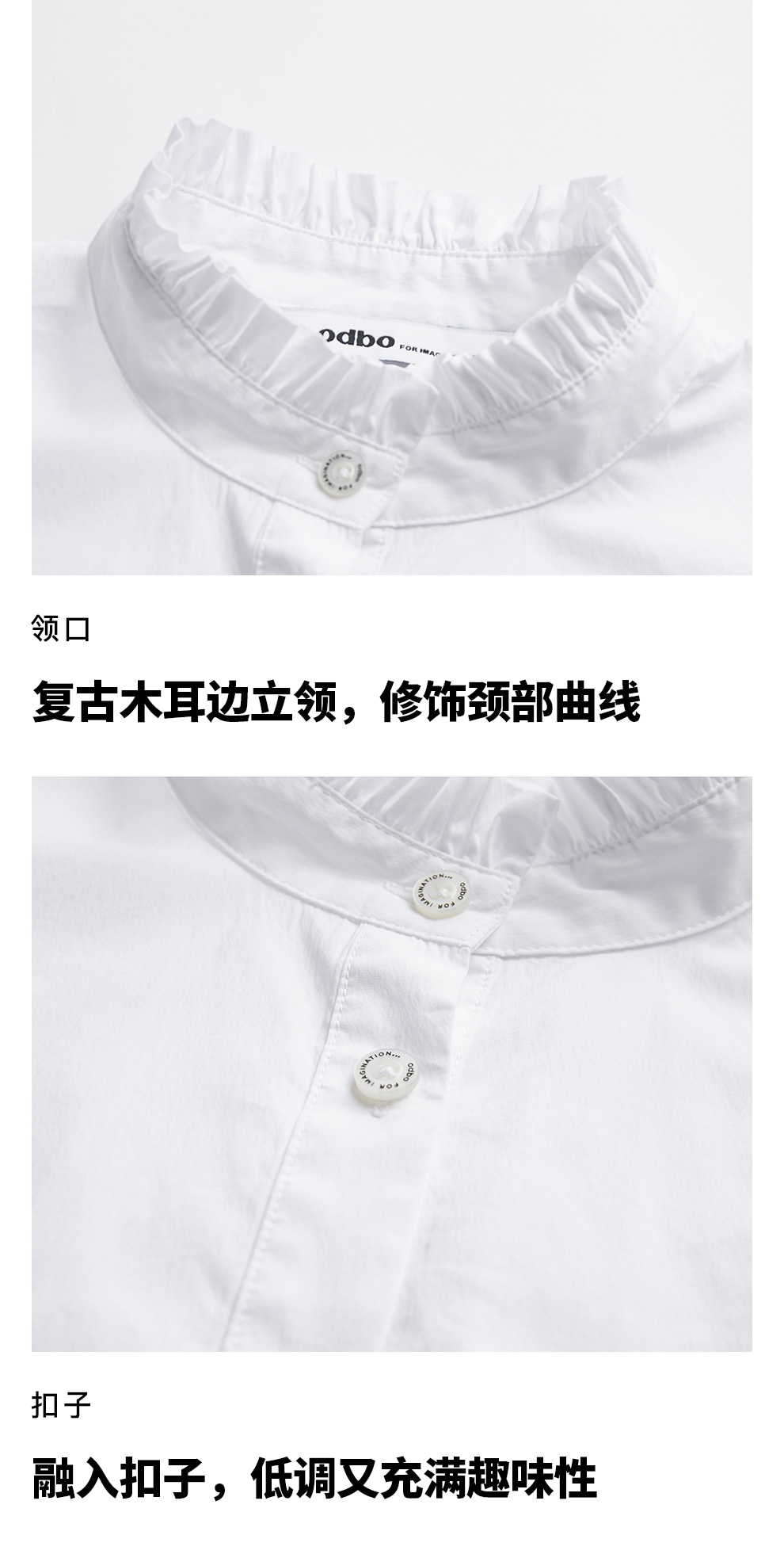 Odbo復古木耳邊襯衫女小立領設計感小眾純棉寬鬆長袖白襯衣