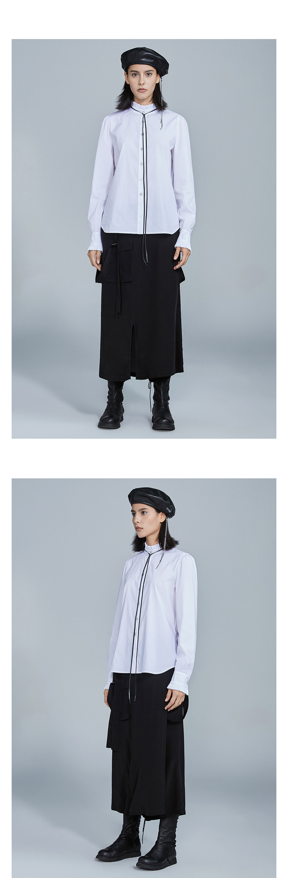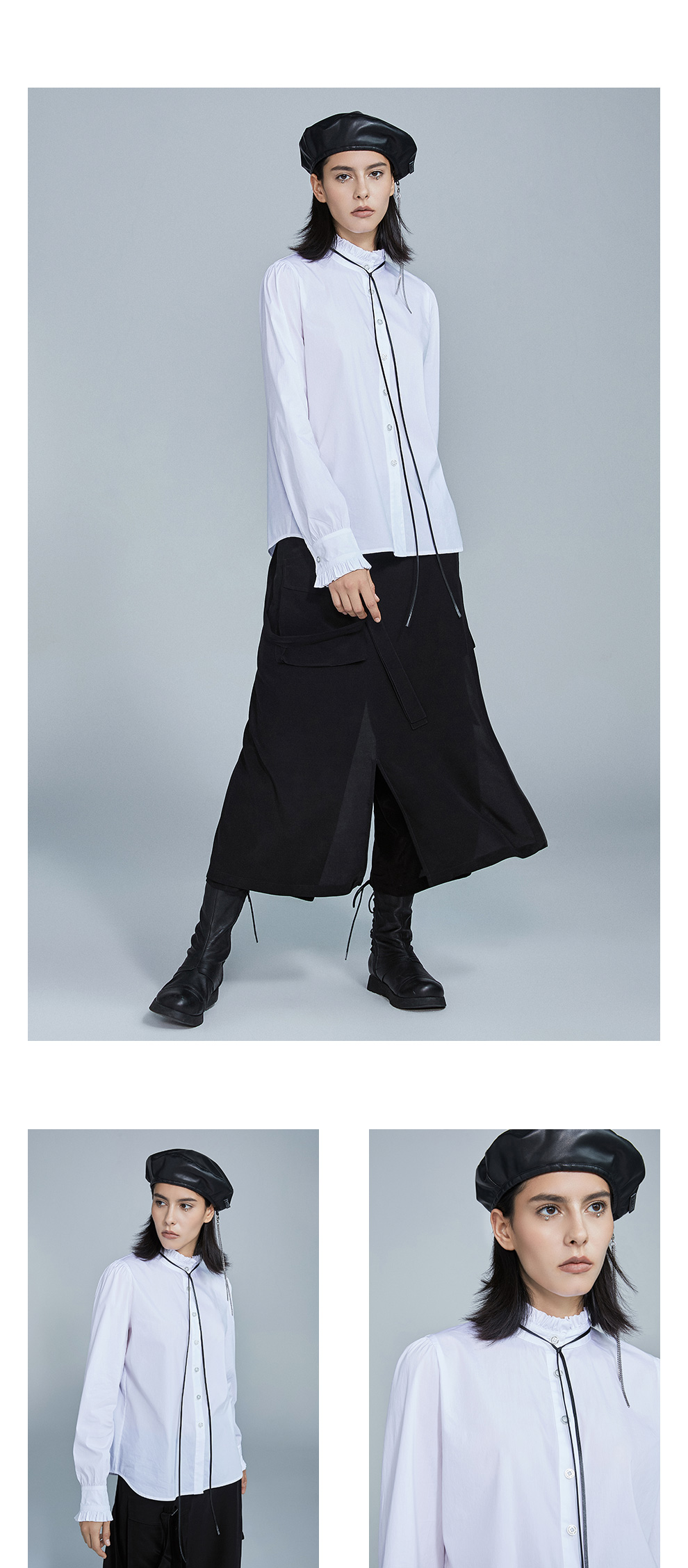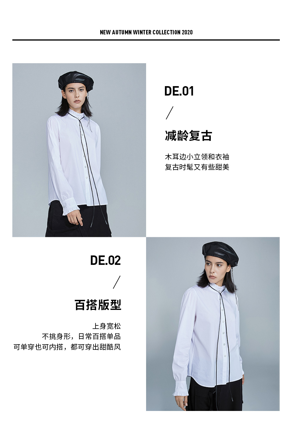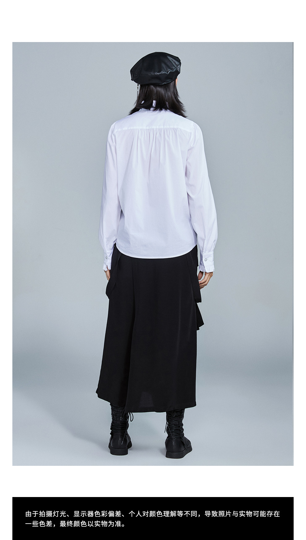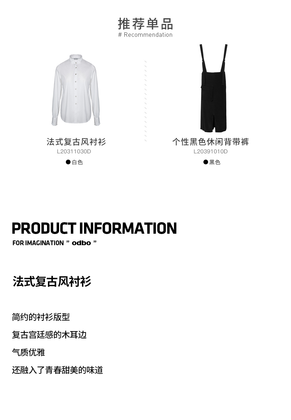 Odbo復古木耳邊襯衫女小立領設計感小眾純棉寬鬆長袖白襯衣