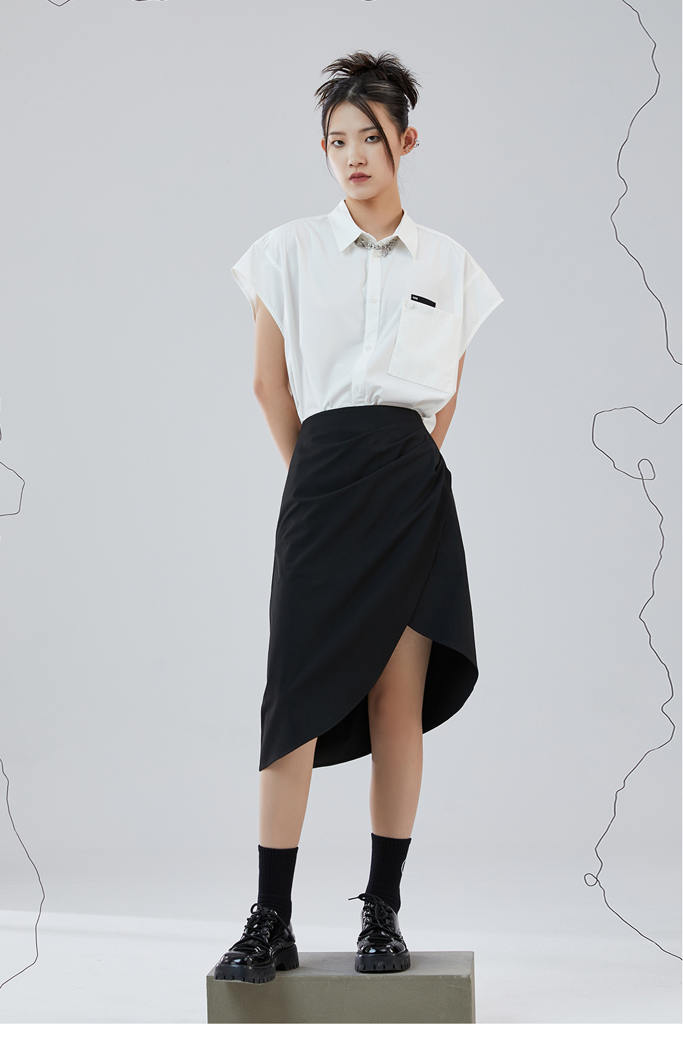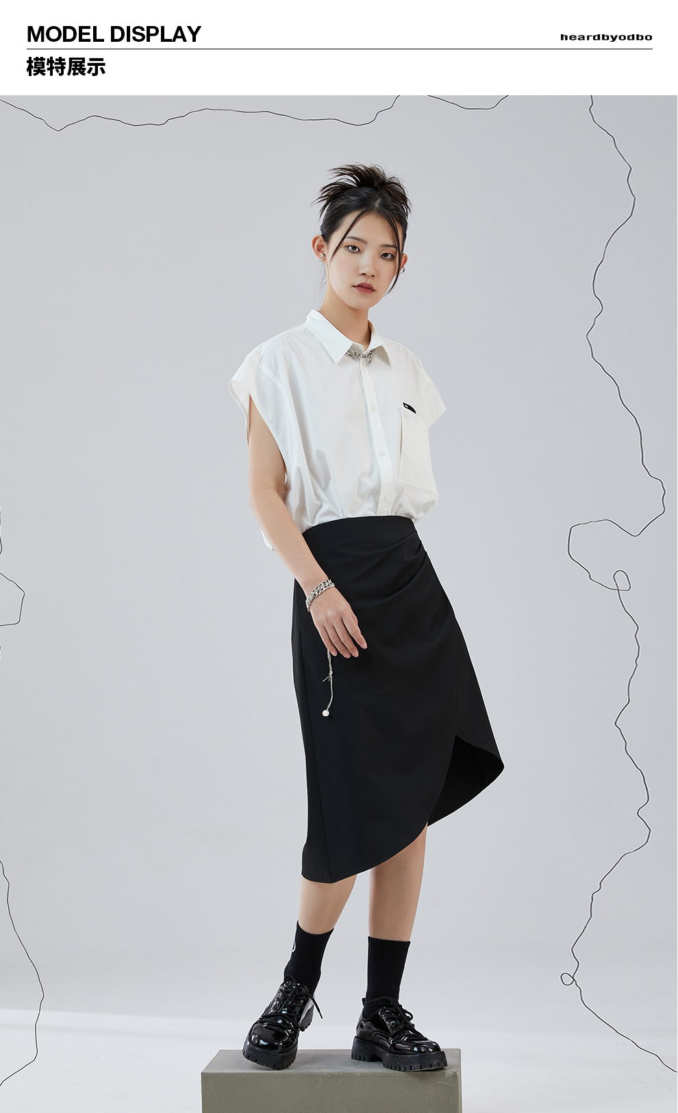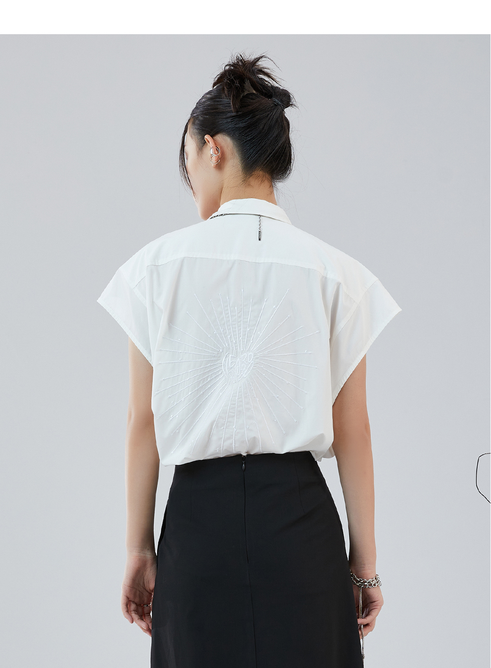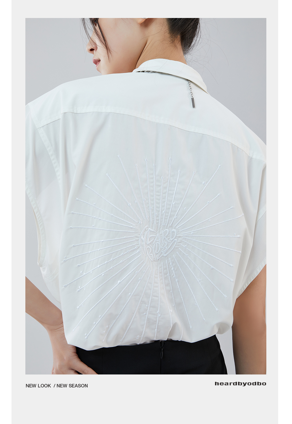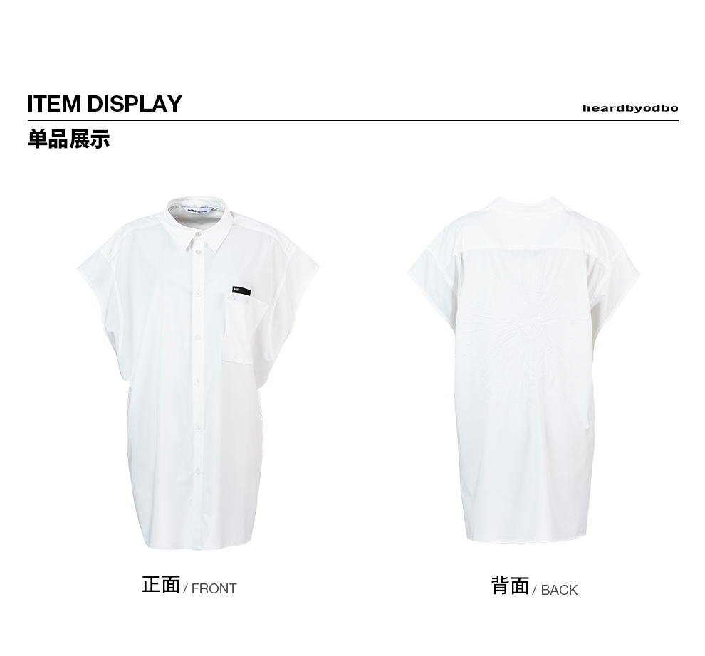 Odbo 520主題後背印花短袖白色襯衫女夏季2022年新款中長款上衣潮