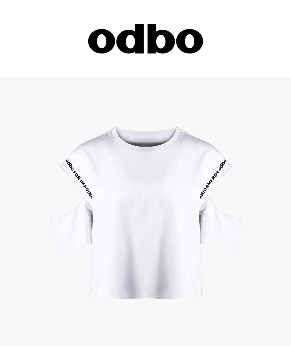 Odbo新款黑科技面料露肩設計感短袖T恤女夏季新品圓領純棉上衣