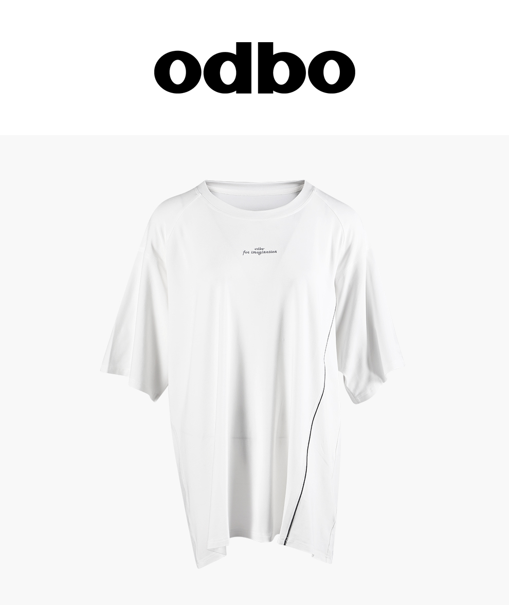Odbo潮牌設計感小眾寬鬆短袖t恤女夏2022年新款刺繡白色圓領上衣