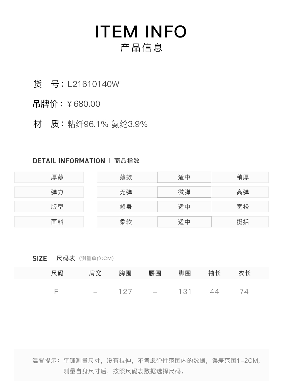 白色 / F - $680.00