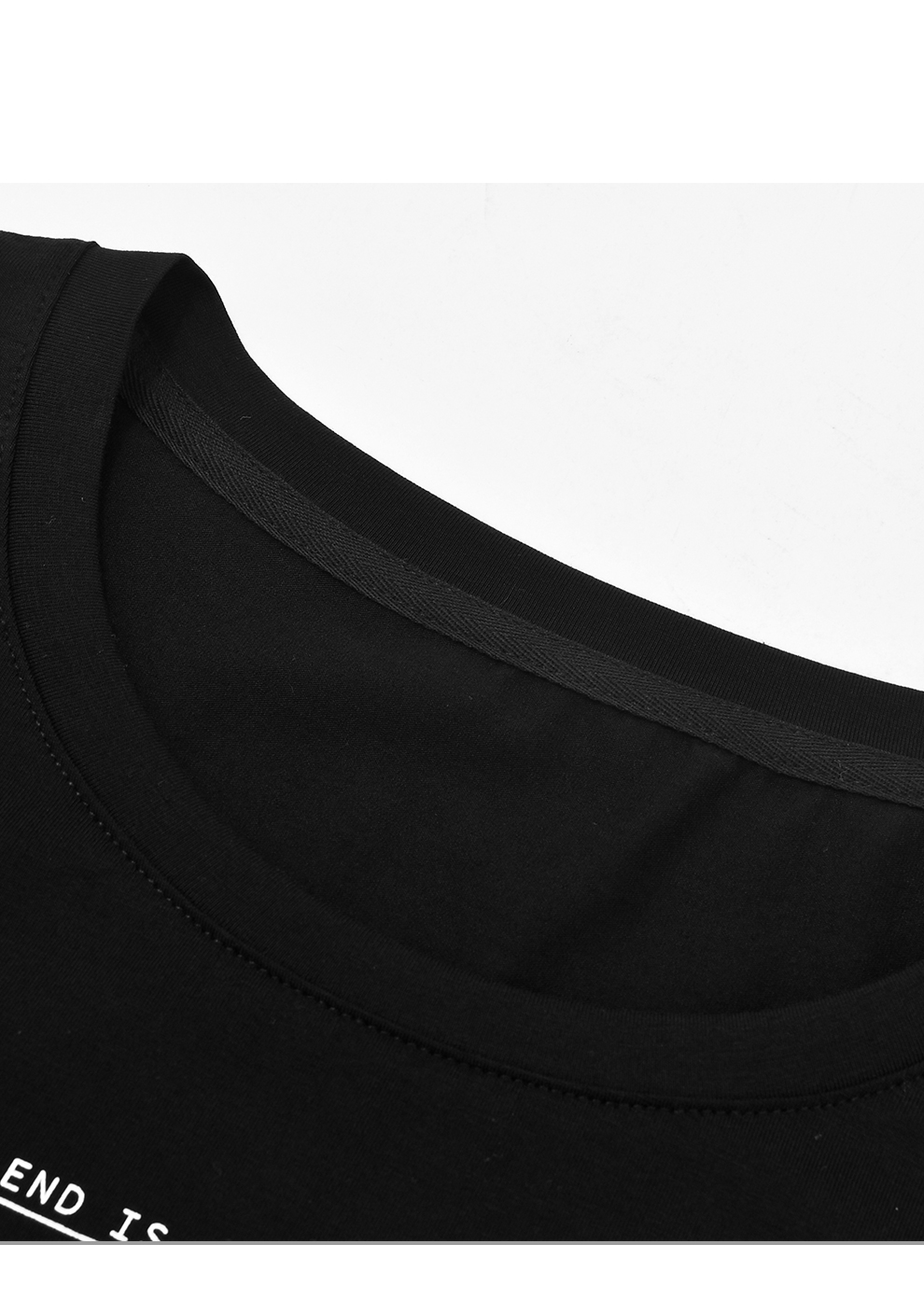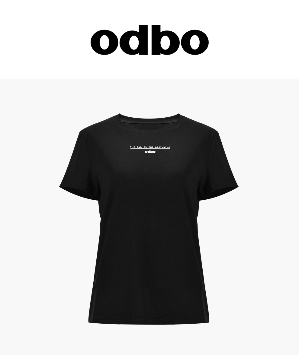 Odbo簡約高端潮牌短袖t恤女夏季新品設計感黑色正肩顯瘦圓領上衣
