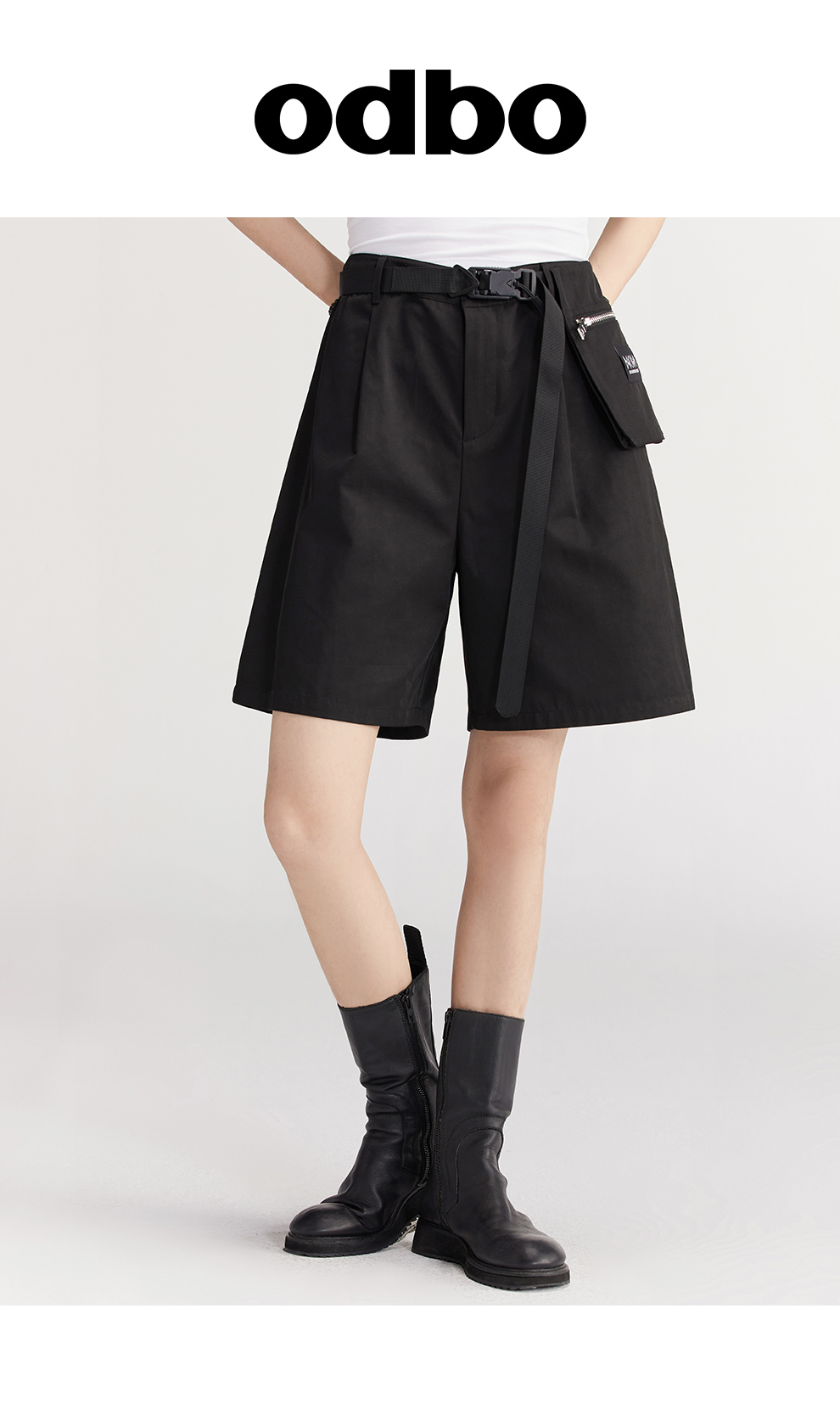 【商場同款】odbo/歐迪比歐工裝腰帶五分褲2022新款女休閒短褲
