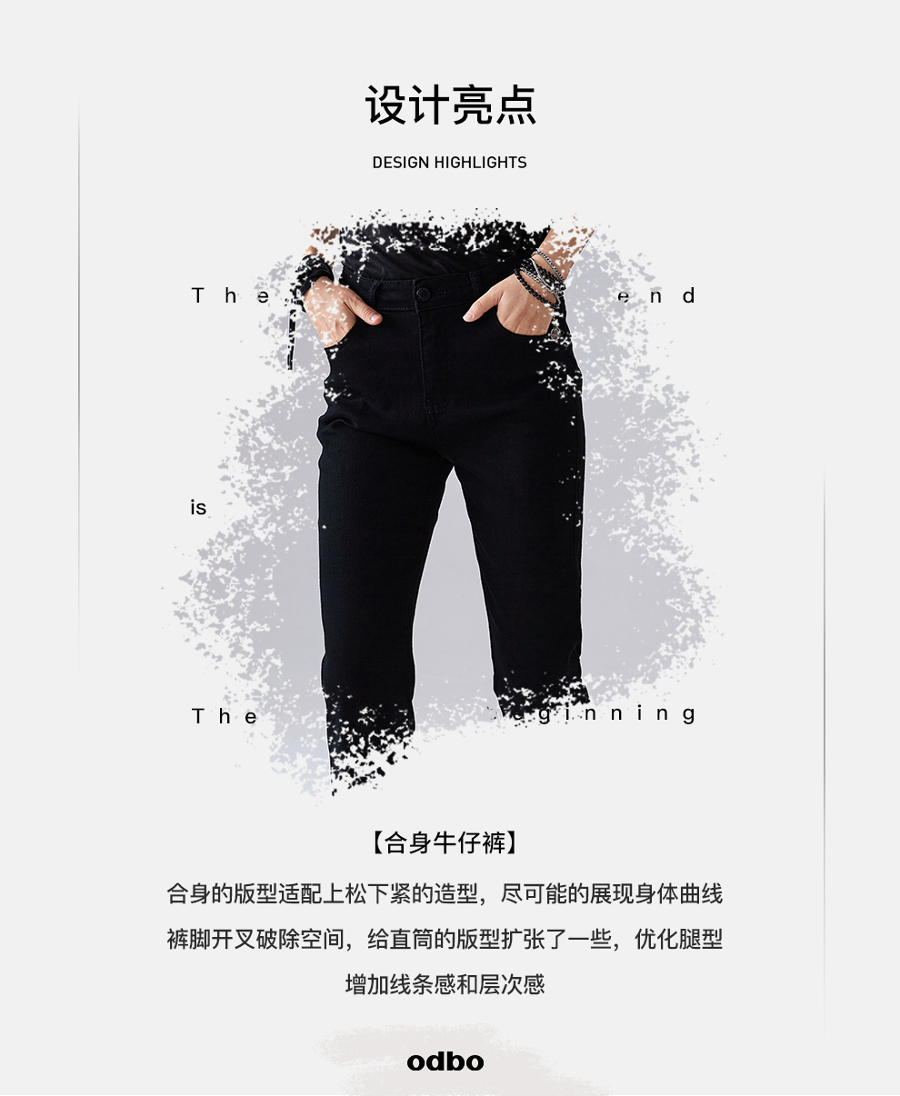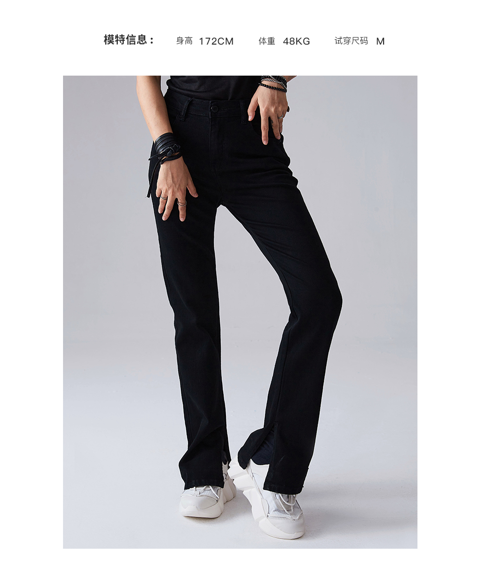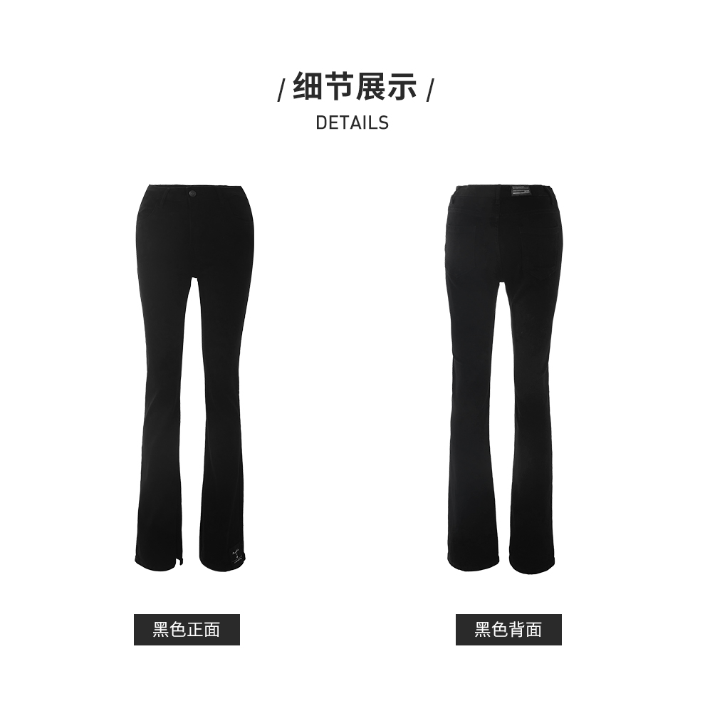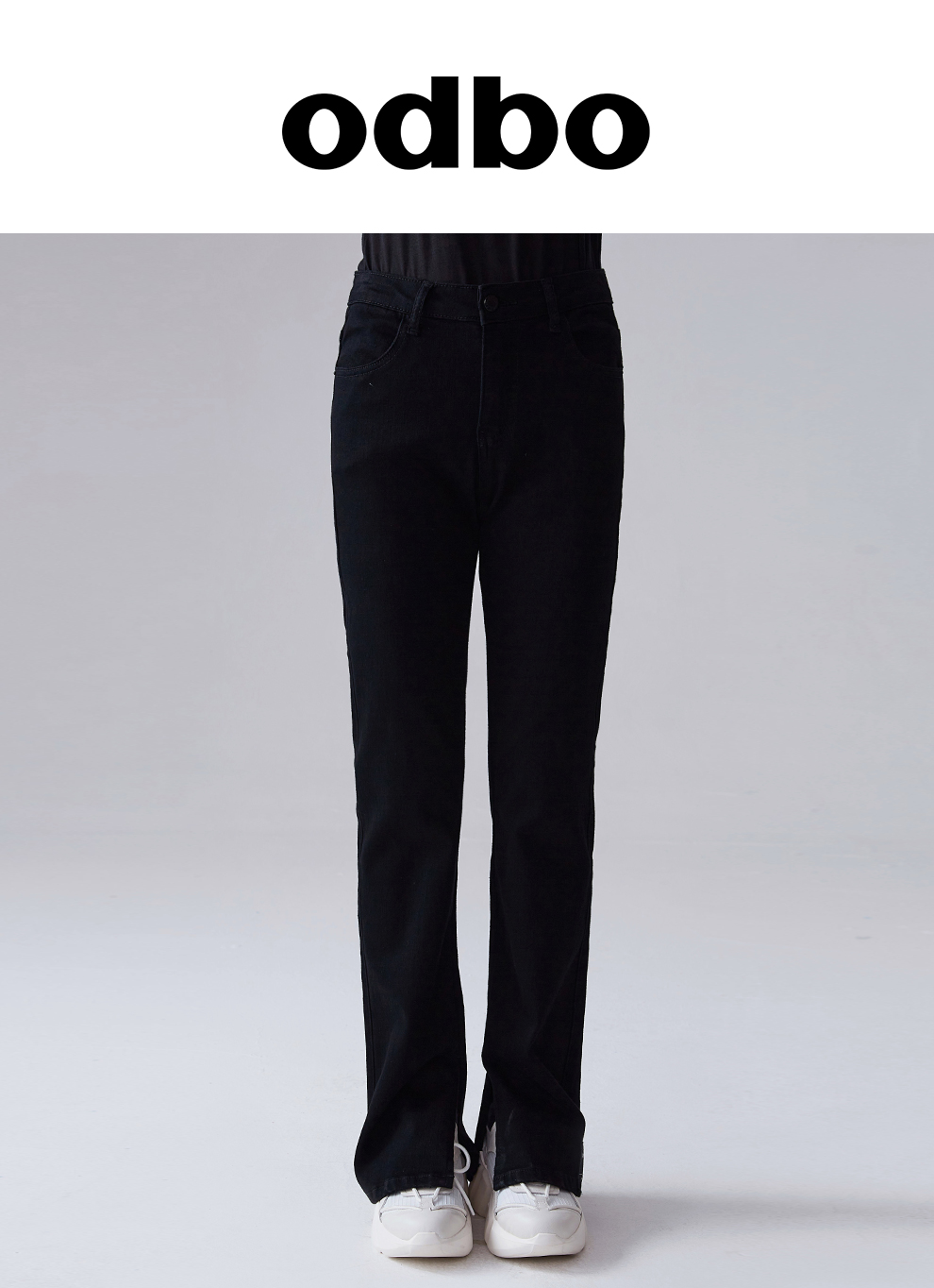 【商場同款】odbo/歐迪比歐時尚黑色牛仔褲女設計感小眾開叉褲子