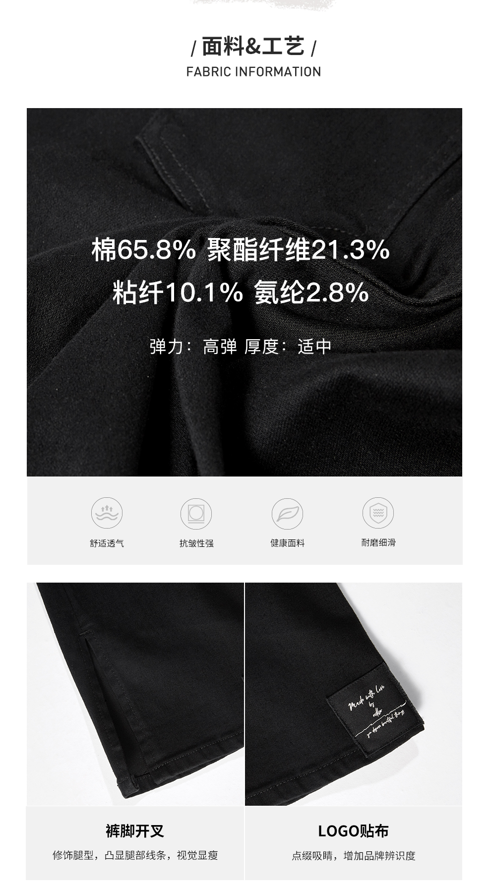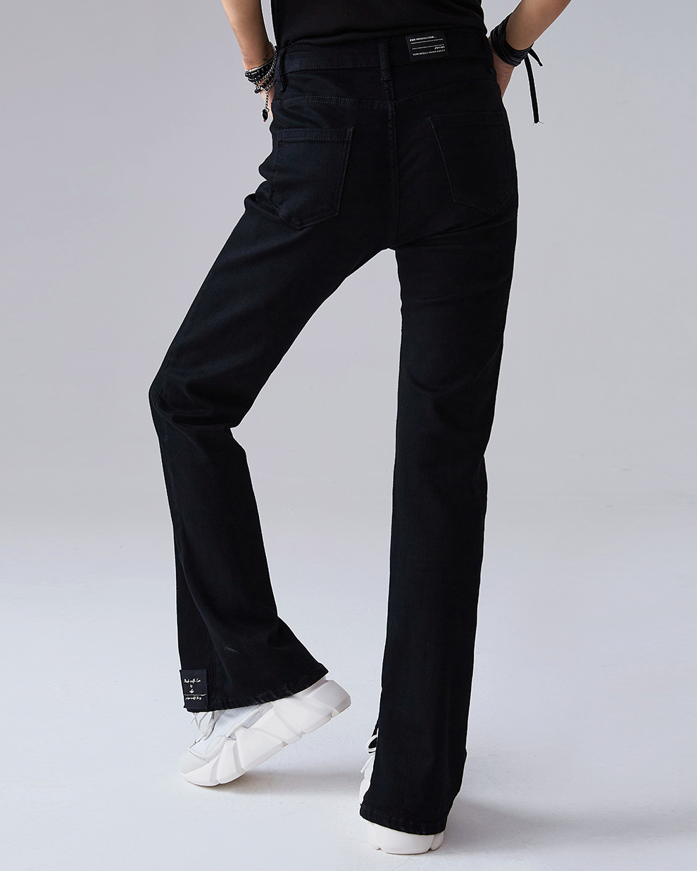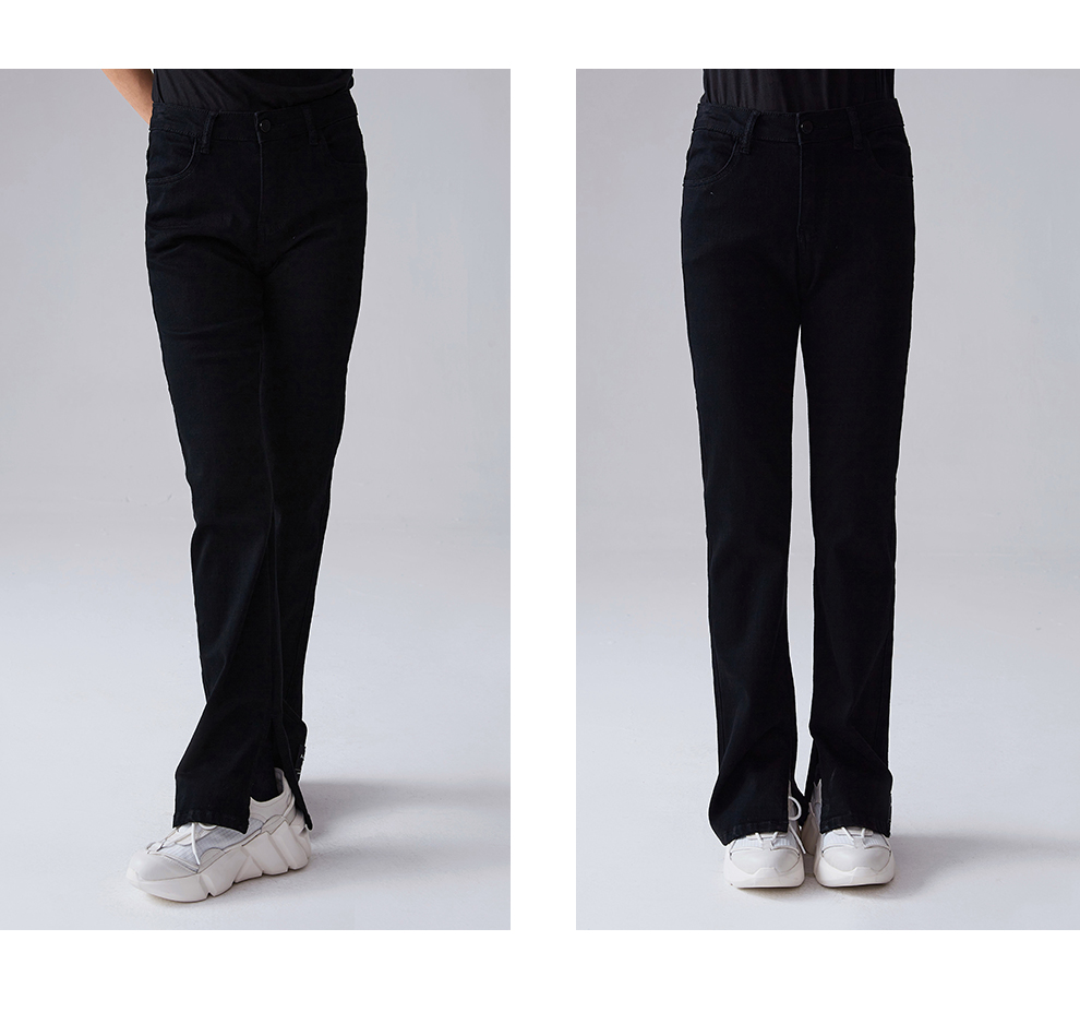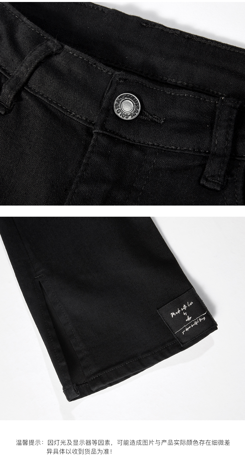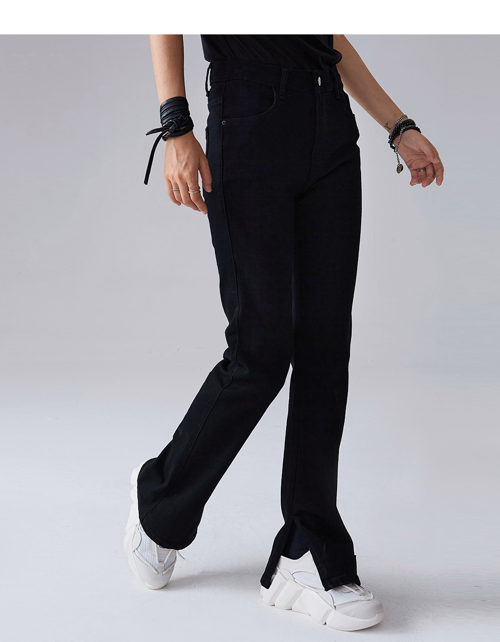 【商場同款】odbo/歐迪比歐時尚黑色牛仔褲女設計感小眾開叉褲子