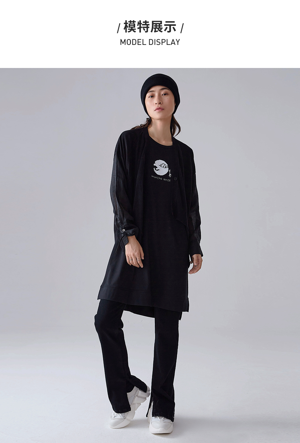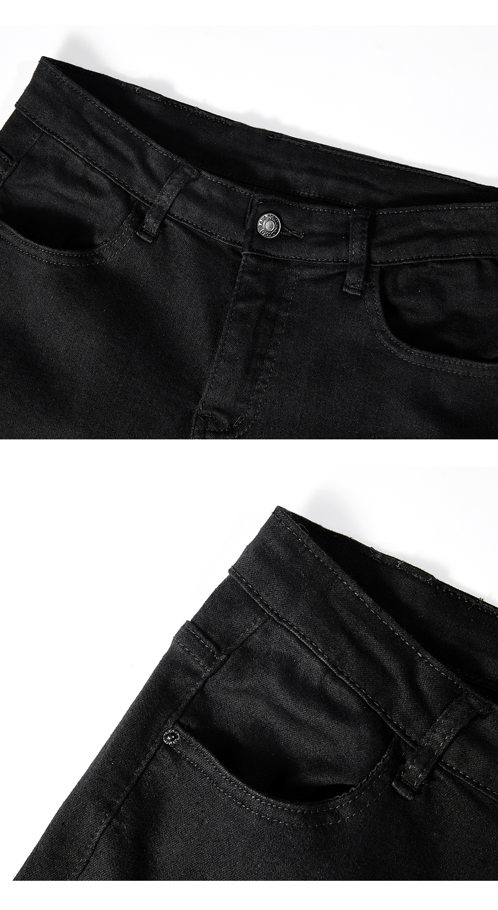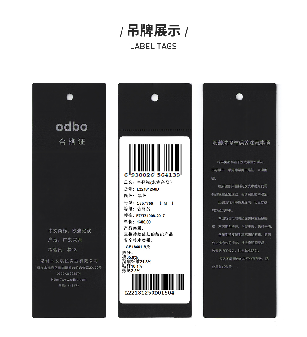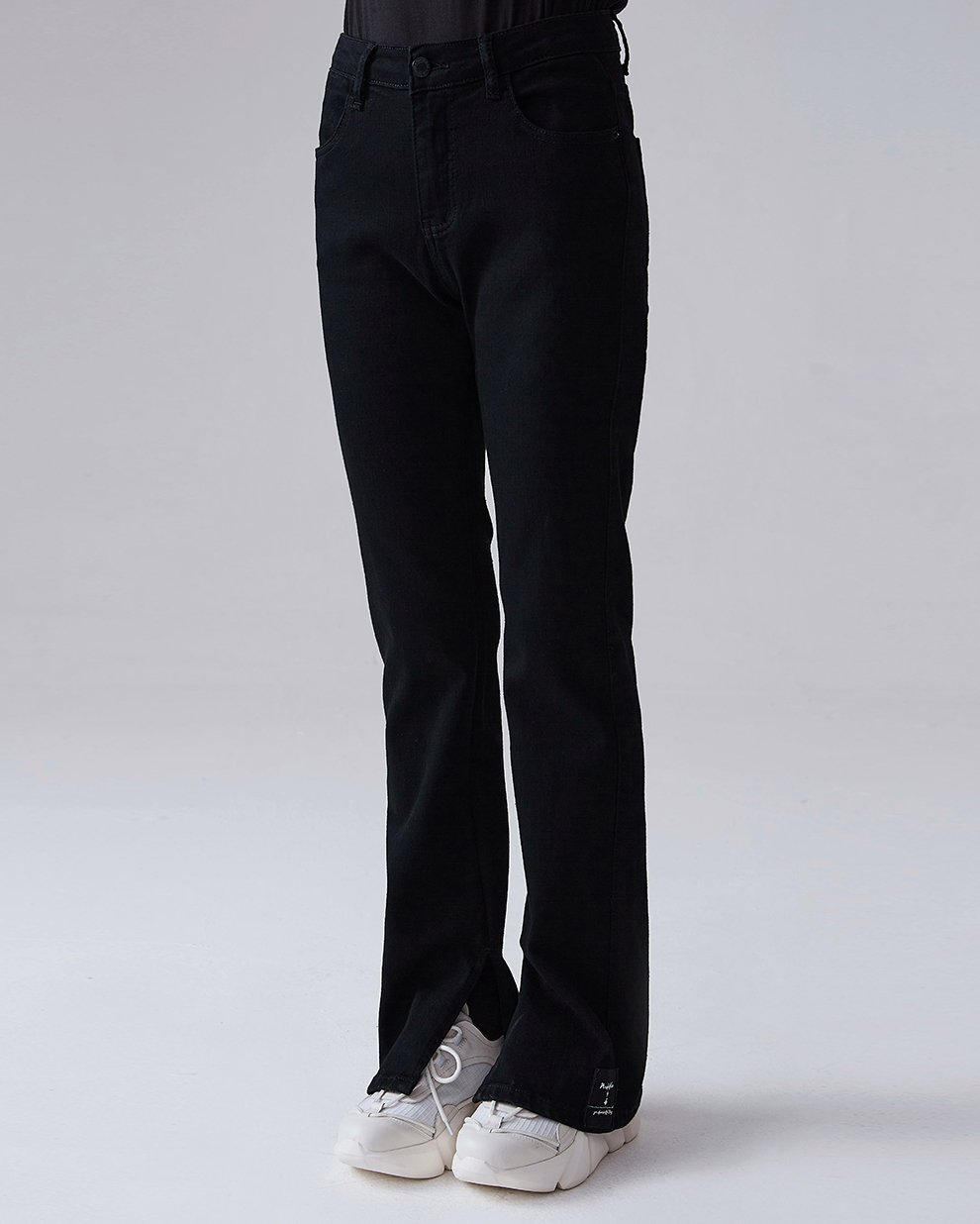 【商場同款】odbo/歐迪比歐時尚黑色牛仔褲女設計感小眾開叉褲子